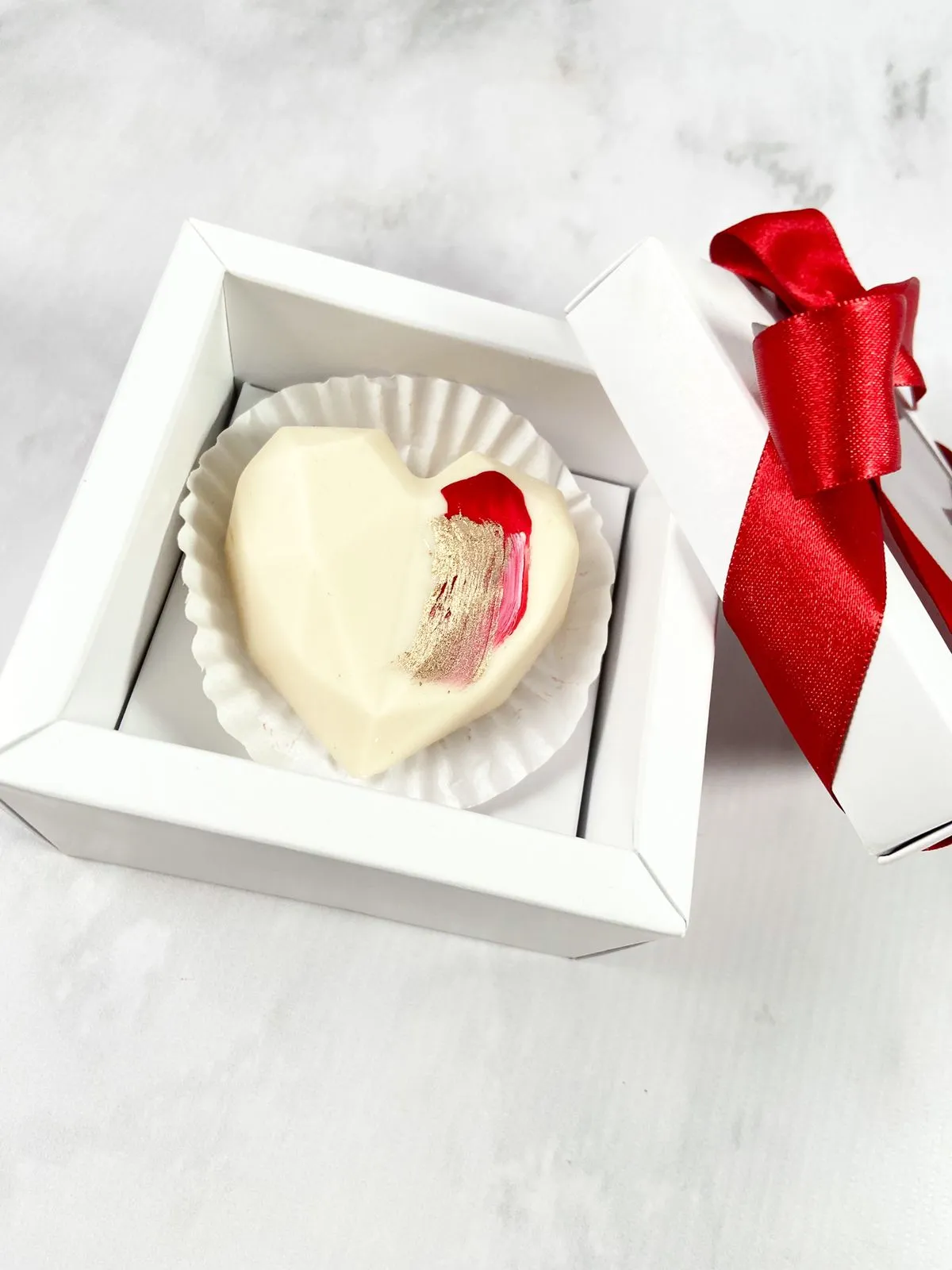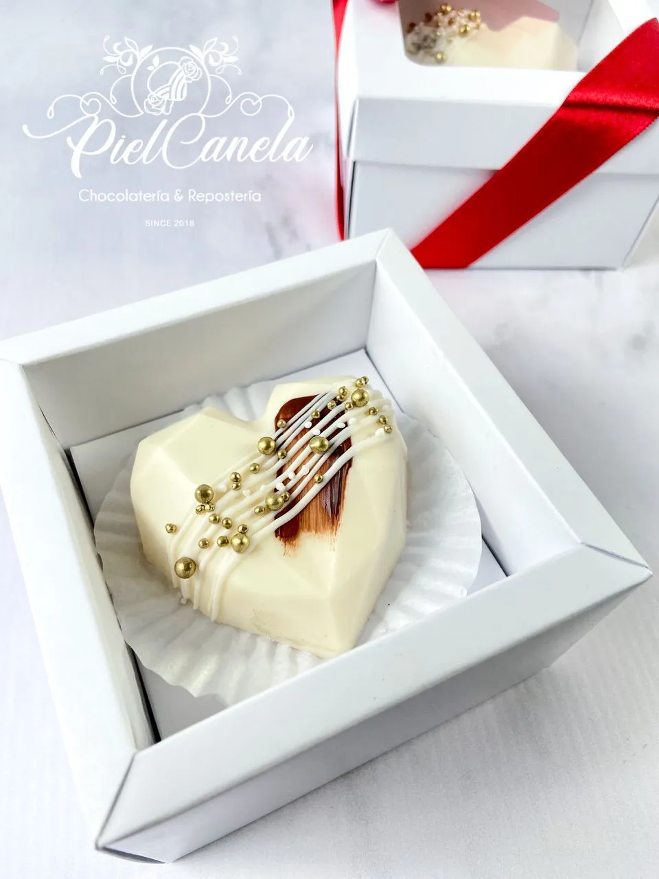 La Presentación: Entregamos tu regalo en una delicada caja blanca decorada con cinta de tela roja, lista para emocionar a quien la reciba.
