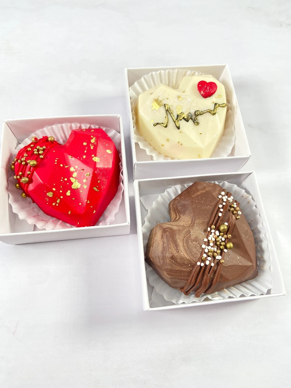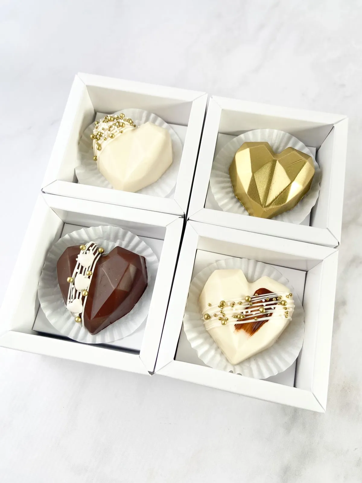 El Protagonista: Un espectacular Corazón Geométrico (tipo diamante) que puedes pedir en dorado brillante, blanco elegante o negro intenso.